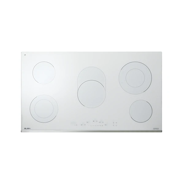 موقد سيراميك كهربائي بلت ان من البا بقياس 90 سم، يقدم 5 مناطق طهي متعددة مع تحكم باللمس ومؤقت ذكي.